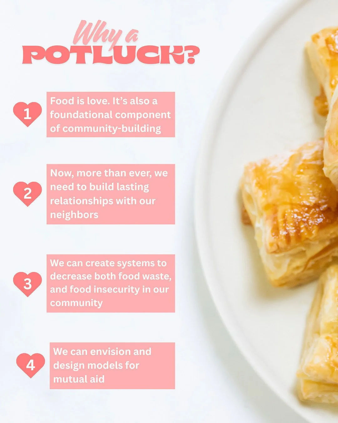 This once a month community potluck will be a place for the Charlottesville community to gather, share food, meet neighbors, and create streams of connection and mutual aid so that our town can be stronger, together.