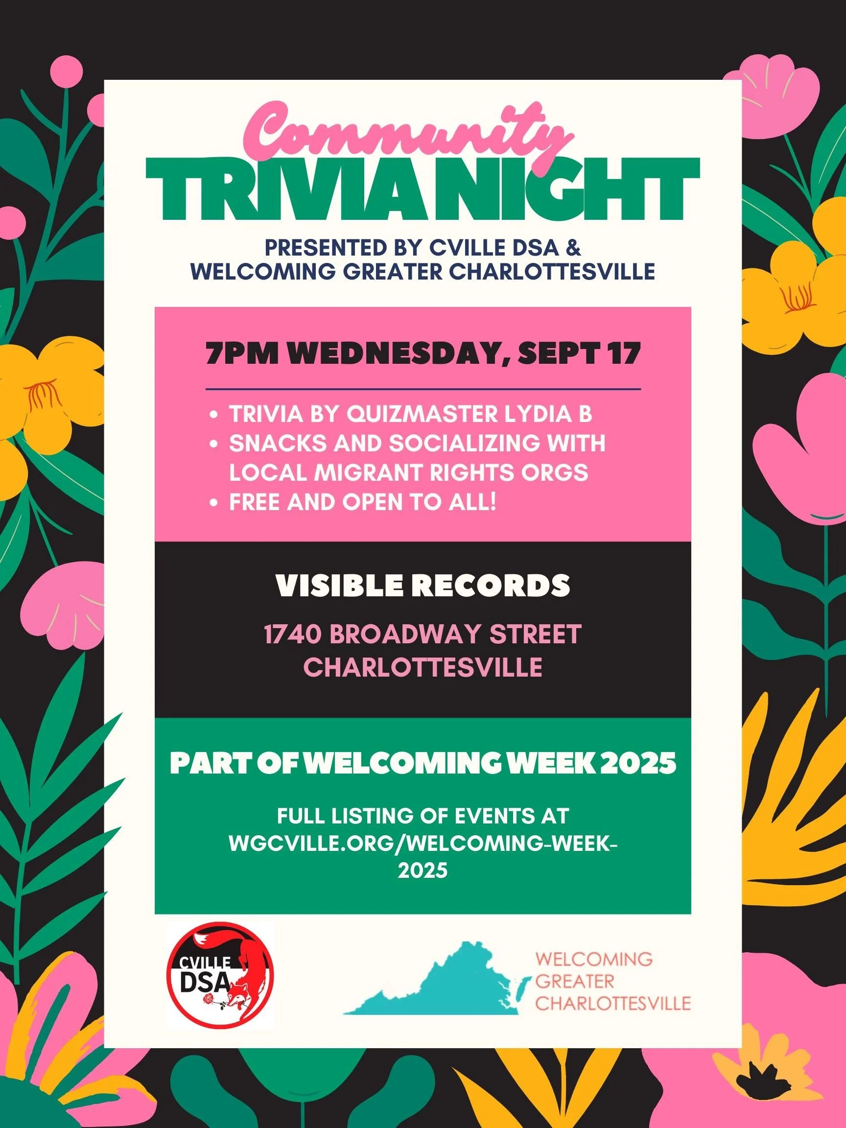 trivia to benefit Charlottesville Area Harm Reduction. There will be snacks, soda/juice, and a